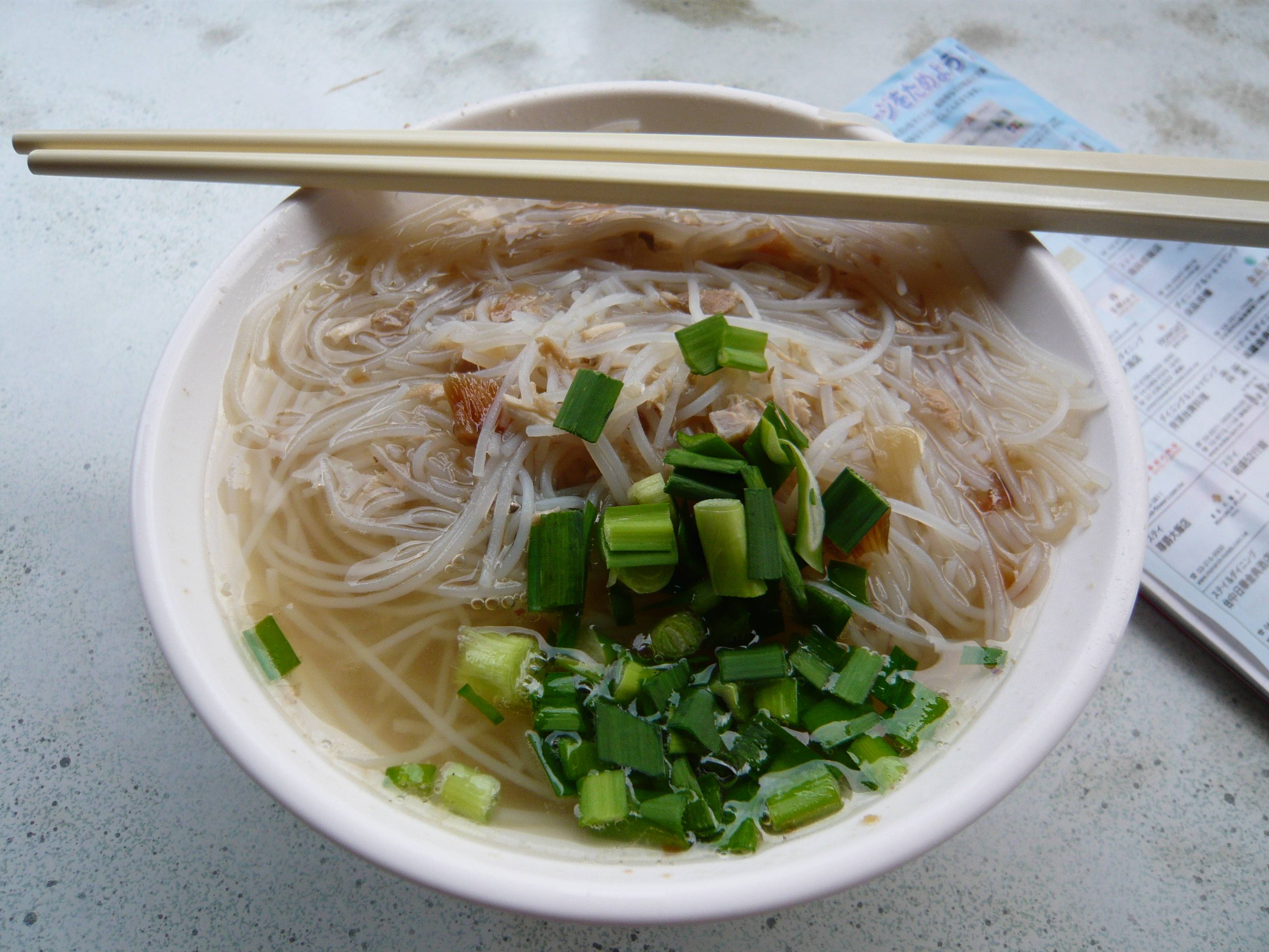 (´・ω・`)「あっさりスープに焦がしネギの香ばしさ、ビーフンの口当たりもモッ最高!」